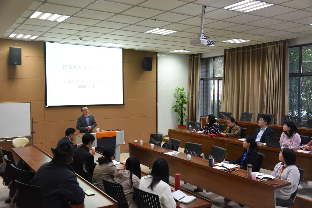 118利安达厅举行。合肥工业大学教授、博士生导师吴华清教授应邀作为主讲嘉宾进行题为“国家级课题申报辅导”的学术讲座。本次讲座由钱吴永副院长主持。