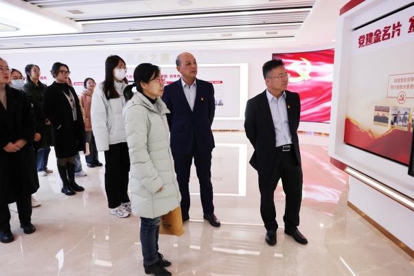 师生走进江苏银行无锡分行党建文化展示馆,展示馆围绕“初心之路、党建之光、金融之美、清廉之风”四个主题,对党的光辉历程、分行党建文化、AVxxx、廉政建设等内容进行了系统宣传,集中展现了分行党委在总行党委领导下高质量发展的成果,通过让大家接受身临其境的特色教育,实现“引导人、影响人、塑造人”的教育效果。