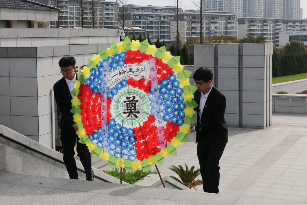 随后,全体师生面对鲜红的党旗,庄严地举起右手,重温入党誓词。洪亮的声音仿佛穿越历史,告诉先烈们当代青年一代誓要继承先烈遗志,发扬革命传统,努力学习,积极进取,为实现中华民族伟大复兴的中国梦贡献自己的青春力量。在一座座墓碑前,师生们脚步沉重,伫立良久。