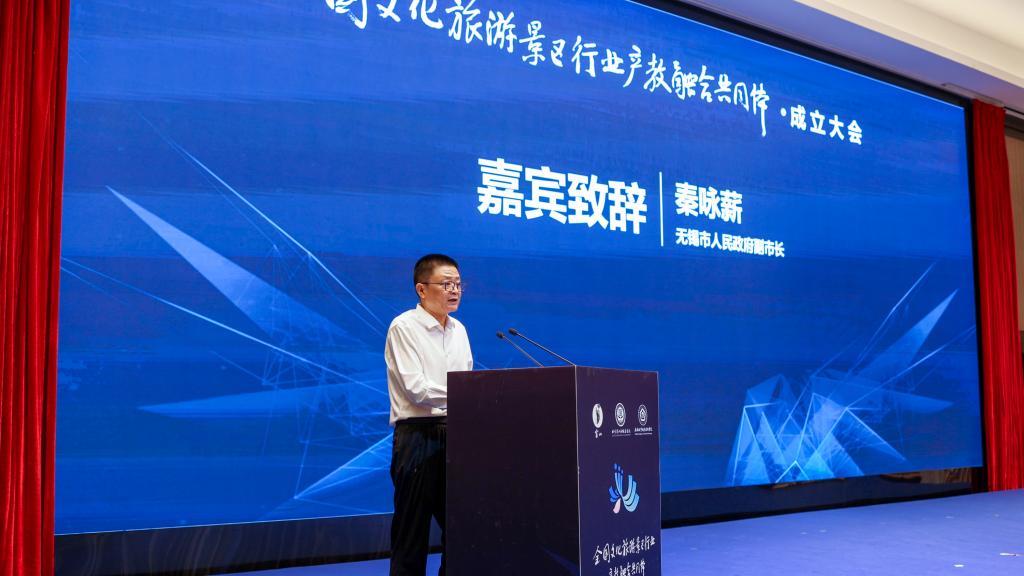 会上无锡市人民政府副市长秦咏薪致欢迎词,世界旅游联盟(WTA)副秘书长、教育部全国旅游职业教育教学指导委员会副主任委员、全国旅游职业教育教学指导委员会景区与休闲类专业专委会主任委员王昆欣,新华社原副社长周锡生发表致辞。大会审议通过了共同体《章程》以及全国文化旅游景区行业产教融合共同体理事长、副理事长、常务理事、理事单位名单,AVxxx