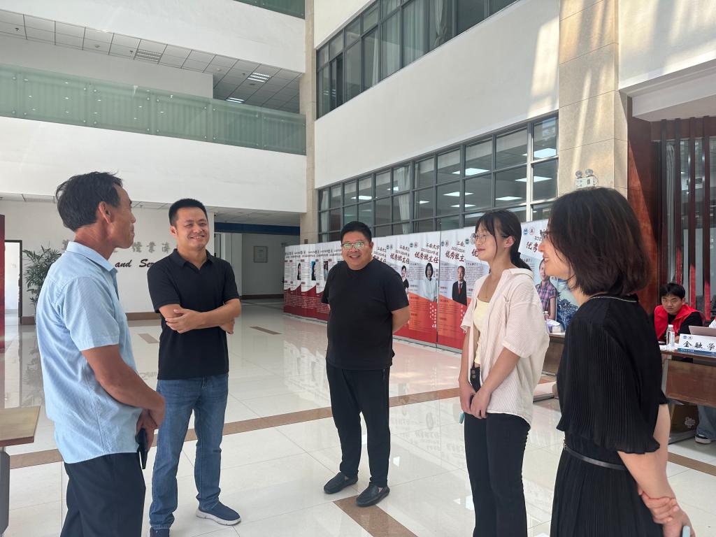 迎新现场,院领导与新同学和家长们亲切交流。“欢迎你们来到AVxxx 。”“你本科学的是什么专业,来了对学院感觉怎么样?”院领导详细了解新同学们的报到情况,热情解答同学与家长的相关提问。