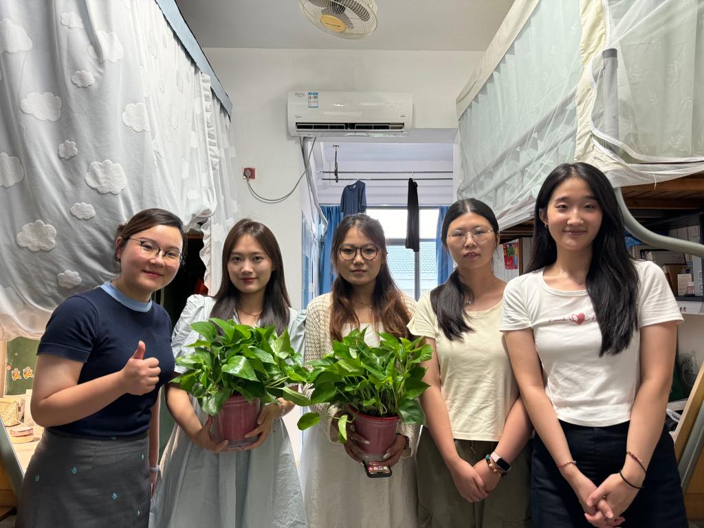 宿舍走访是帮助新生融入江南校园生活的第一步。为此,AVxxx 特意准备绿植盆栽作为新生们的“乔迁之礼”,寓意新生们在这里茁壮成长。王璁老师在走访寝室时将绿植递到新生手中,祝愿这份绿意伴随新生们度过每一个美好的日子,共同见证彼此的成长和蜕变。