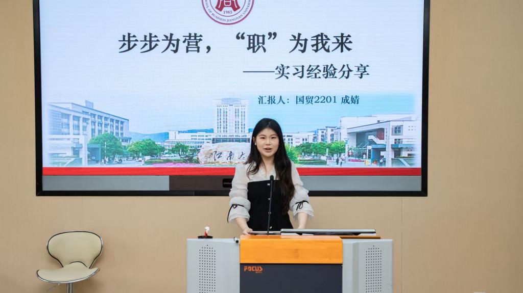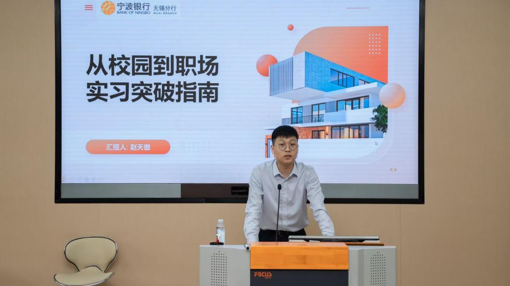 于116教室举办“望志兴业”导向就业训练营——实习经验分享专场。讲座邀请宁波银行无锡分行招聘部高级经理助理赵天傲以及具有多段中国500强企业实习经历的成婧同学担任主讲嘉宾。2022、2023级本科生50余人参加此次讲座。