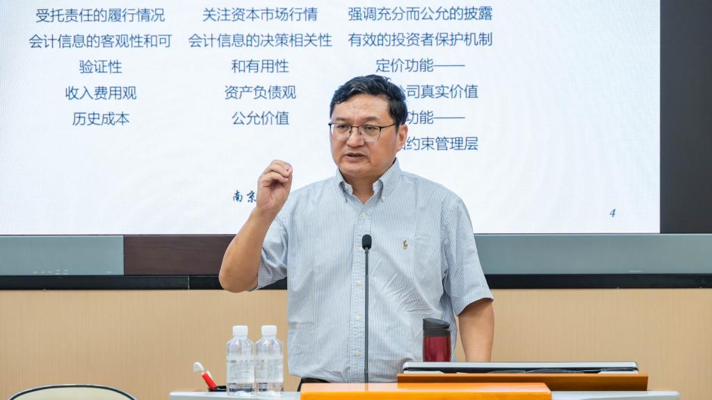 王跃堂教授首先以国际比较视角,系统梳理了美国财务会计准则委员会(FASB)、国际会计准则理事会(IASB)以及中国财务报告质量标准的形成与演进。他深入解析了相关性、可靠性、实质重于形式、谨慎性等质量特征的差异与发展,并指出近年来国际准则不断趋于统一,标志着财务报告质量标准正由分散走向趋同、由形式走向实质。这一前沿性解读,为现场师生理解全球会计治理格局和未来发展趋势提供了深刻启示。