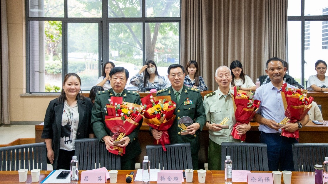 学生工作处副处长蒋洁向军休老干部颁发了“关爱纪念章”,学生代表向他们送上鲜花,表达尊敬和爱戴!