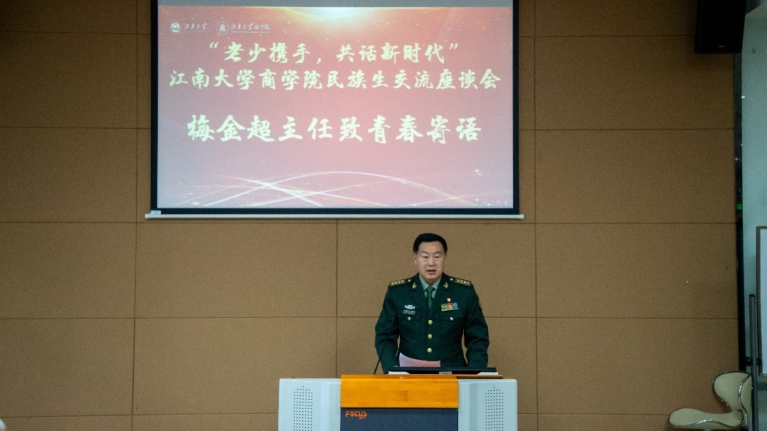 无锡市退役军人事务局关工委常务副主任梅金超向同学们致青春寄语。梅主任指出,新时代大学生要珍惜难得的学习机会,全面提升知识素质能力,要成为堪当民族复兴重任的栋梁之材,要有家国情怀、责任担当、过硬的本领和吃苦耐劳的拼搏精神,要把这四点转化成为追求人生的理念和行动自觉。青年学生是幸福的一代,也是责任重大的一代,是祖国未来的建设者和守卫者,青年强则国强,同学们今天的努力决定着中华民族明天的复兴,他勉励同学们珍惜美好时光,冶炼品质陶冶情操,刻苦学习全面发展,掌握真才实学,努力成为建设伟大祖国,建设美丽家乡的有用之才,栋梁之材,为促进民族团结进步,实现共同繁荣发展,做出应有的贡献。
