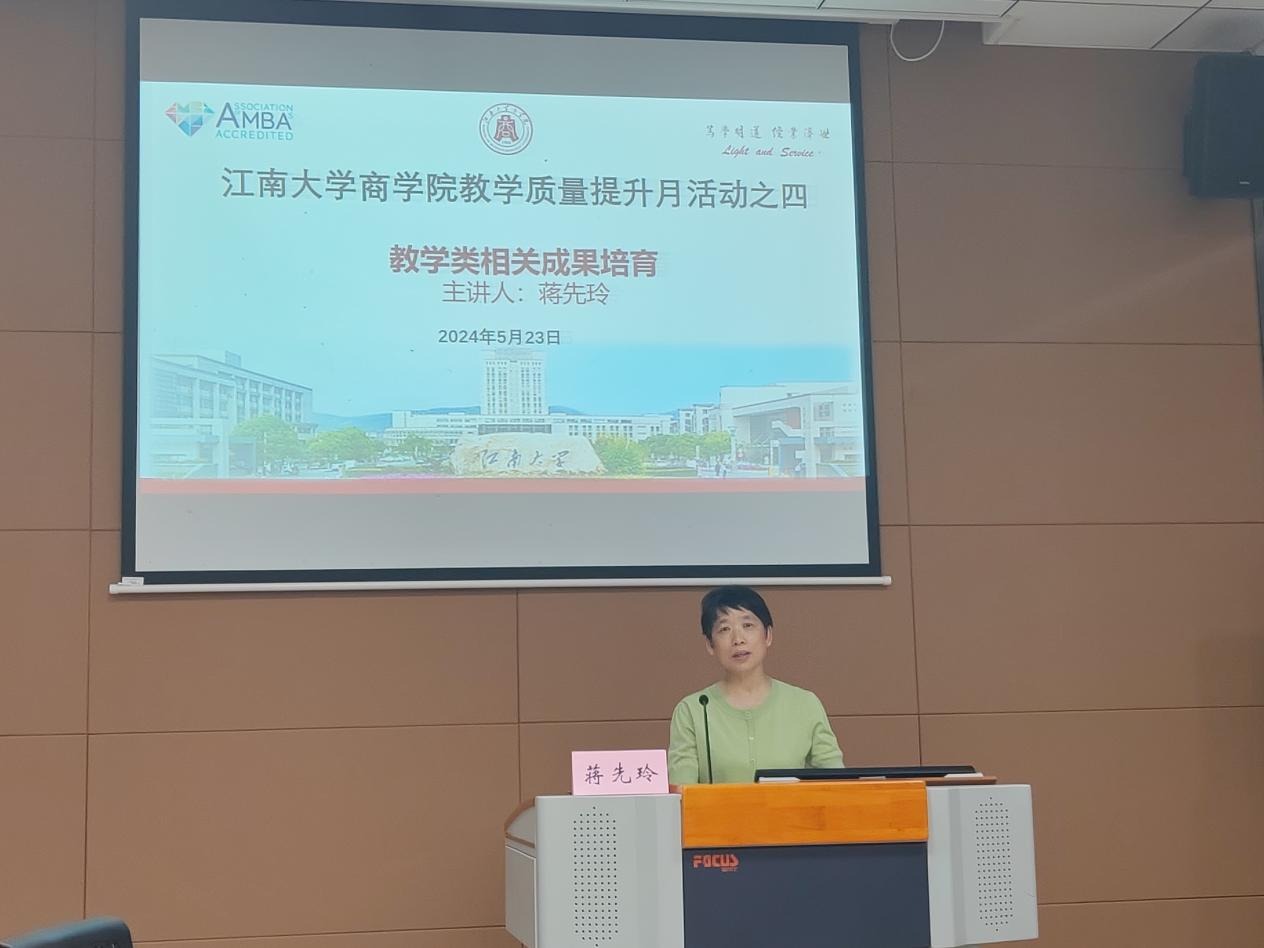 5月23日下午,AVxxx 邀请对外经贸大学蒋先玲教授为全院教师作《教学类相关成果培育》的专题讲座,讲座由院长浦徐进教授主持。蒋先玲教授在讲座中分享了她在教学成果奖培育与申报方面的经验,指出教学成果奖的申报需要满足一系列要求,需要涵盖转变教育思想观念、创新人才培养模式、推动教学管理机制改革等方面。会上,蒋先玲教授在学院办学定位、专业设置、课程设置、培养路径等方面进行有效规划,并就如何培养人才分享了她的深度思考,希望年轻教师树立将科研成果反哺教学的理念,将教学和科研同步推进。