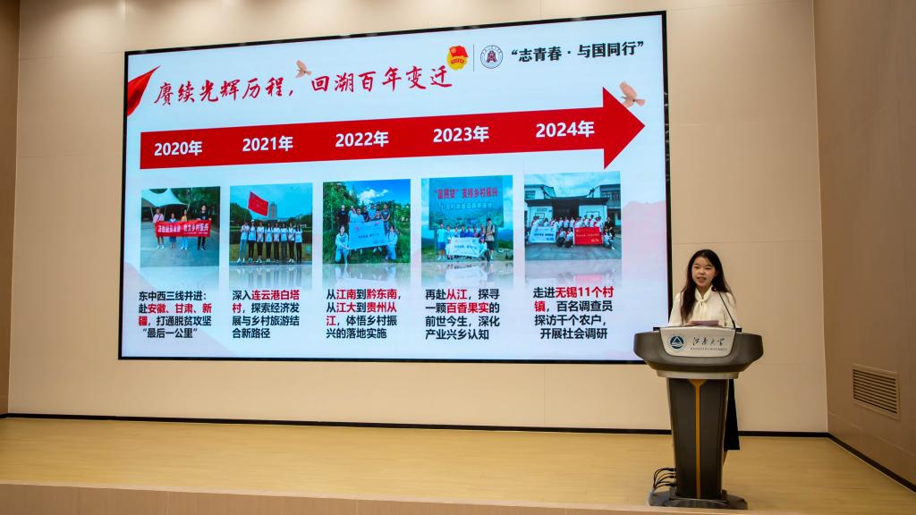 本次活动邀请2024年暑期社会实践优秀团队代表来到现场,师生一同“实践归来话成长”,讲述亲身实践故事,分享青春成长收获。“志青春·与国同行”寻迹百年实践团赓续“第五次无锡、保定农村调查”百年学术接力,走进无锡11个村收集1000个农户样本,细致勾勒无锡农村的百年变迁;“志青春·与国同行”红光璀璨文旅梦实践团远赴青海海东,探寻革命遗迹红光村的文旅发展路径,感受革命历史的热血厚重。“遗风沧韵”实践团赴河北沧州调研非遗发展现状,品味非遗传承与魅力,为非遗文化保护、传承与发展贡献力量。“莓梦承真”实践团在安徽安庆蓝莓种植园思考产业振兴妙计,用行动践行青年担当。“辉南农旅梦”实践团在实地考察中学习“产业融合助力乡村振兴”的发展经验,体会农村农业现代化、农文旅结合、产业融合对乡村振兴的重要作用。“校企携手,质绘未来”调研团走进知原药业有限公司,围绕企业库存管理与排产优化问题开展研究,助力企业管理提质增效。
