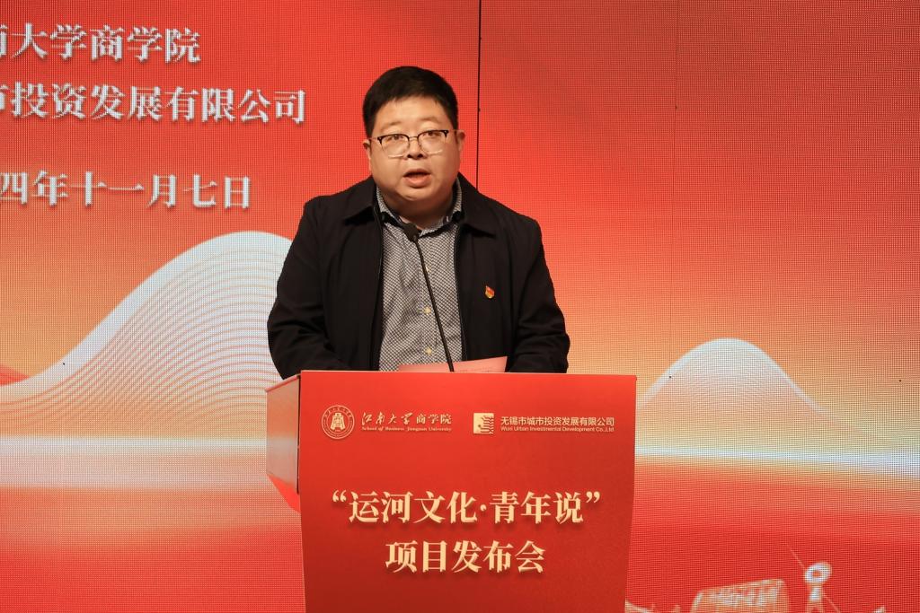 徐劲在致辞中表示,市城建发展集团积极响应国家大运河文化带建设和高品质城市艺术空间建设要求,逐步推进城市更新,打造了运河艺术公园这处黄金水道滨水空间。他指出,“运河文化·青年说”项目不仅是一项城市文化宣传项目,更是一堂生动的社会实践育人课,希望通过青年将历史文化传承与现代城市建设成果在更多群体中广为传播。