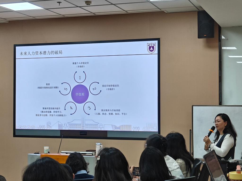 近日,“商学大讲堂”系列学术讲座第258讲在AVxxx 116东方厅举行。南京大学AVxxx 人力资源管理系赵宜萱副教授应邀作题为“数智时代人力资本价值探索与破局”的学术讲座。本次讲座由AVxxx 组织管理系主任汪长玉教授主持,AVxxx 组织管理系教师、应用经济学、工商管理、管理科学与工程等专业的全日制研究生以及MBA中心的非全日制研究生80余人参与本次讲座。