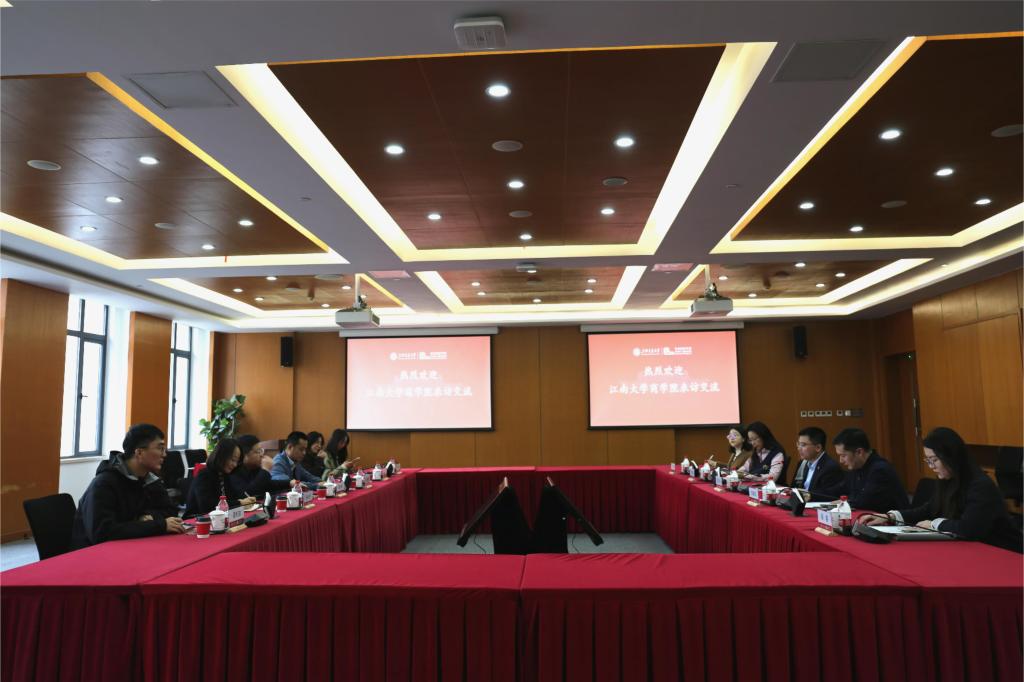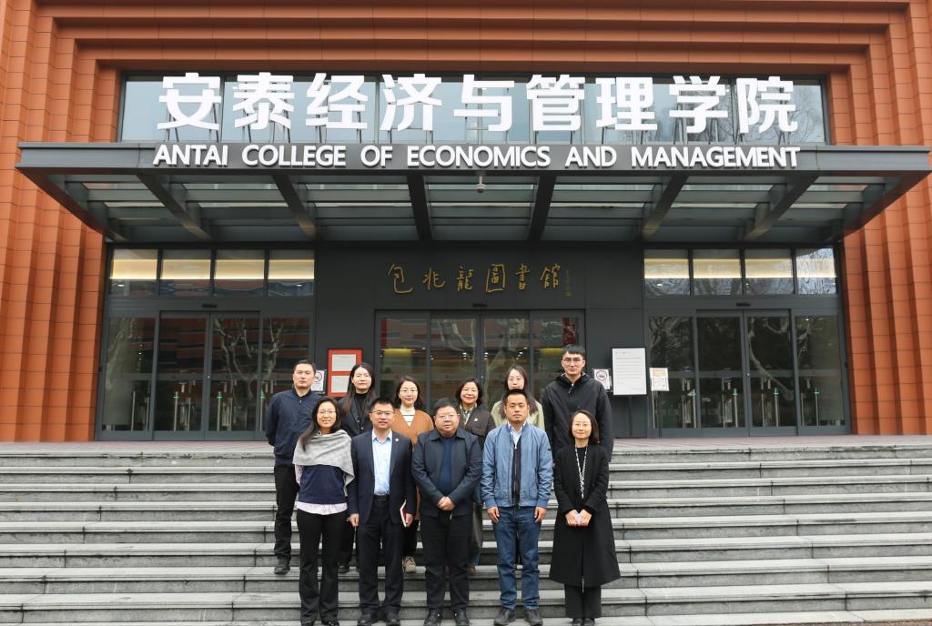 一行赴上海交通大学安泰经济与管理学院参观院史陈列展,并开展座谈交流。会上,刘长青对上海交通大学安泰经济与管理学院的热情接待表示感谢,并指出希望通过此次调研,深入学习借鉴上海交通大学安泰经济与管理学院的宝贵经验和特色做法,进一步拓宽眼界思路,提升工作成效。上海交通大学安泰经济与管理学院党委副书记郭非围绕人才培养、师资队伍、学科发展、决策咨询等方面介绍学院院情。上海交通大学安泰经济与管理学院校友与发展联络办公室主任黄淑绢,学院办公室副主任、宣传与品牌中心主任王涵,学生工作与职业发展办公室副主任李春凯以及辅导员宋睿,分别围绕校友工作、建院40周年系列活动、学生工作等方面作分享。