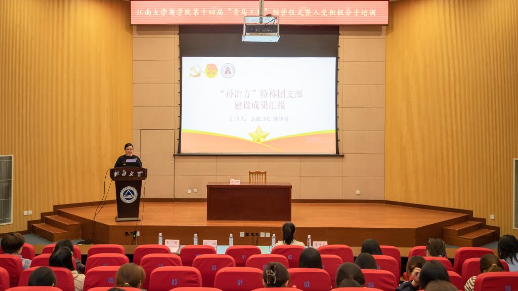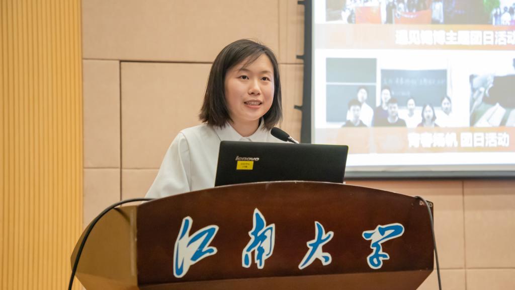 金融2102团支书钟妙清作为“孙冶方”特称团支部代表发言,分享了金融2102班的建设思路和工作经验。她号召AVxxx 青年跟随习近平总书记的脚步,传承优秀文化传统,发挥商科优势,争做时代新人,为团学组织建设贡献力量。学院分团委书记王璁为“孙冶方”特称团支部班主任贺志芳、徐昉颁发感谢信,感谢其对特称团支部建设的指导与支持。