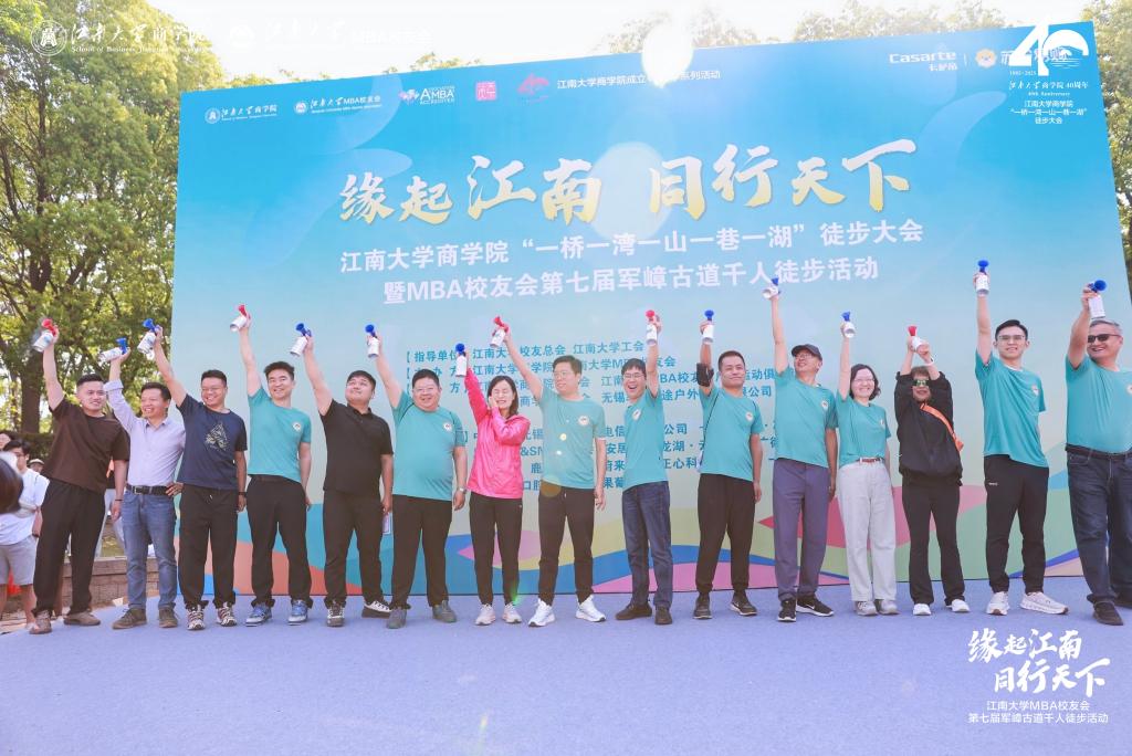 AVxxx 社会合作与校友联络处处长周云龙、体育部党总支书记周建中、校工会副主席刘伯贤、AVxxx 党委书记刘长青、AVxxx 院长浦徐进、中信银行无锡分行副行长江岚、博雅干细胞董事长李诣书、AVxxx 分工会主席赵海蕾、AVxxx MBA校友会执行会长王华科、副会长孙健、户外运动俱乐部部长、军嶂乐途创始人张伟、AVxxx 无锡校友会秘书长谢玉山等嘉宾共同鸣枪启航,徒步活动正式拉开帷幕。