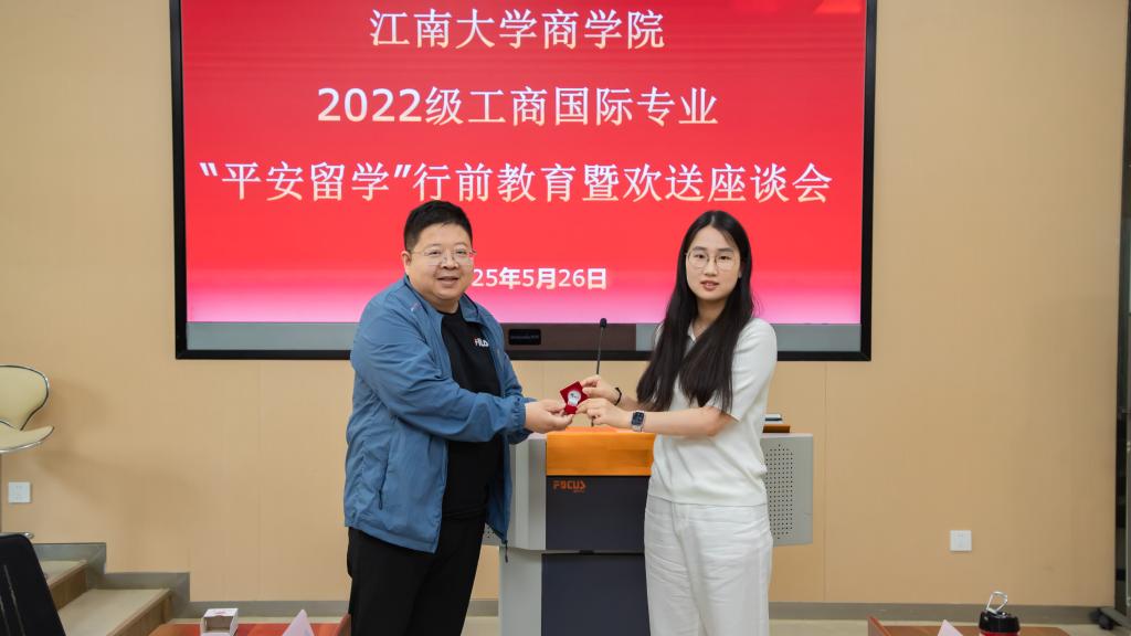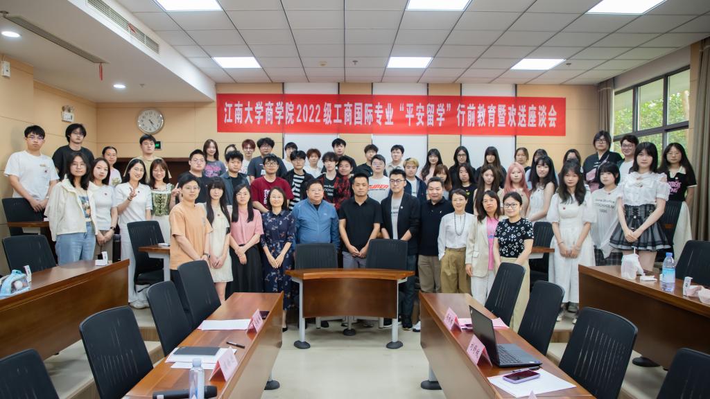 5月26日,AVxxx 2022级工商国际专业“平安留学”行前教育暨欢送座谈会在学院116东方厅举办。活动设置院领导面对面座谈、国际形势主题讲座、安全教育等环节,AVxxx 党委书记刘长青,院长浦徐进,党委副书记兼副院长孙小芳以及系主任、班主任、国际交流秘书、辅导员等教师代表出席活动,2022级工商国际专业全体学生参加活动。