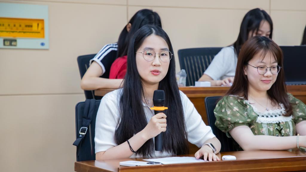 座谈会上,工国2202班张诒和作为AVxxx 2022级工商国际专业学生代表发言。她回顾了在校学习生活的点点滴滴,对母校的悉心培养表示诚挚感谢,并分享了未来留学生活的目标规划,表示期待早日学成回国,为中国式现代化建设贡献青春力量。
