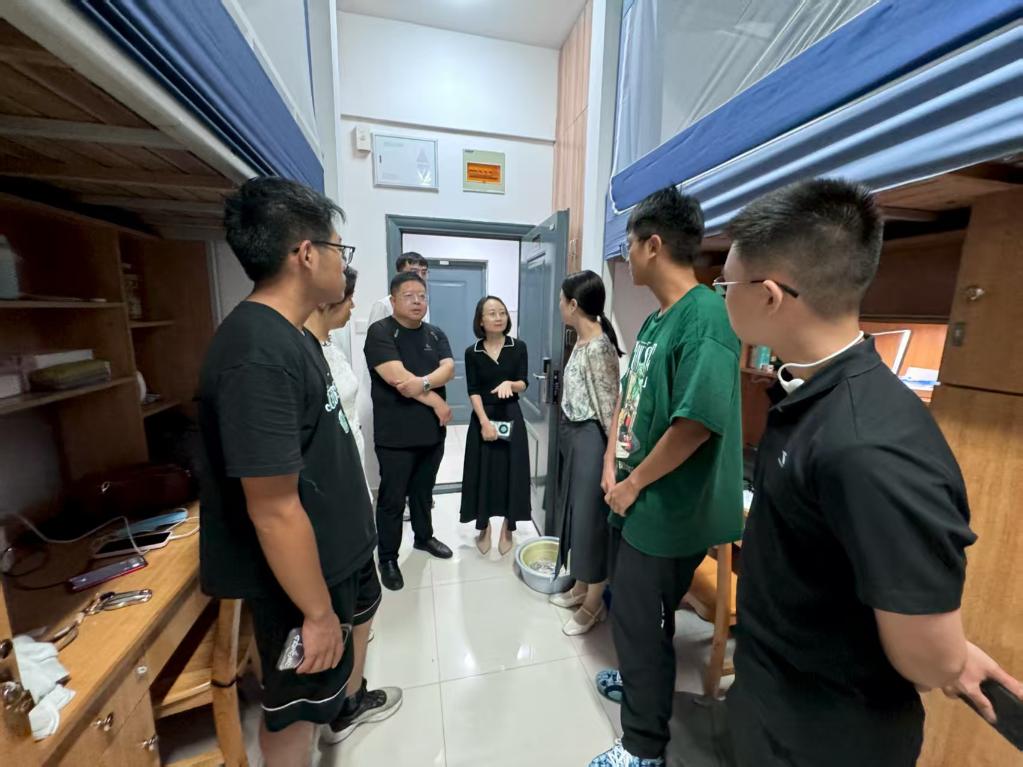 8月29日晚,学院领导和新生班主任们走进学生宿舍,进一步了解2025级新生大学生活适应情况,并就宿舍消防安全、电信诈骗防范、心理健康热线等内容进行宣传教育,切实增强新生的安全防范意识和自我防护能力。