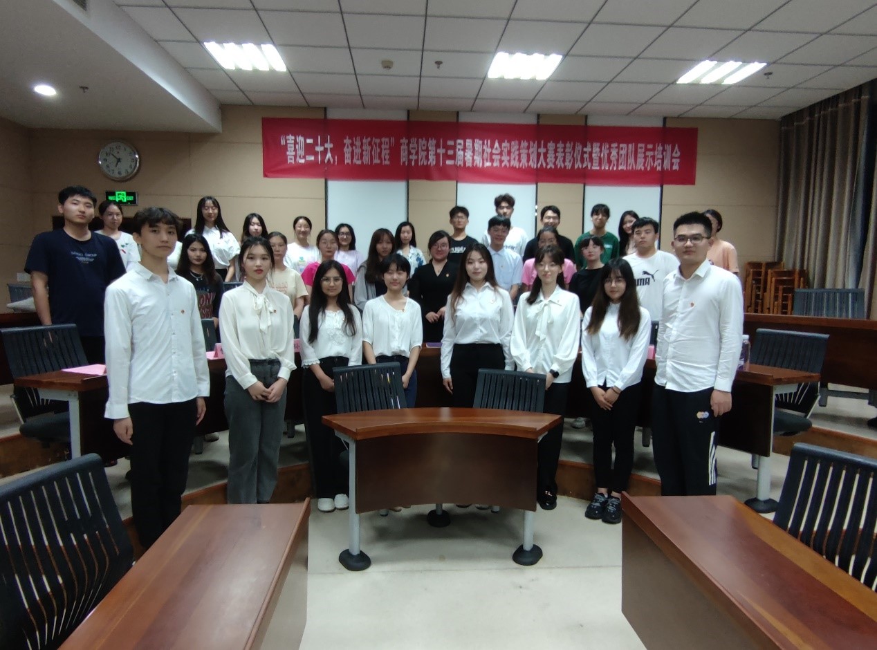 优秀实践团队向“商耀青春实践团”授旗