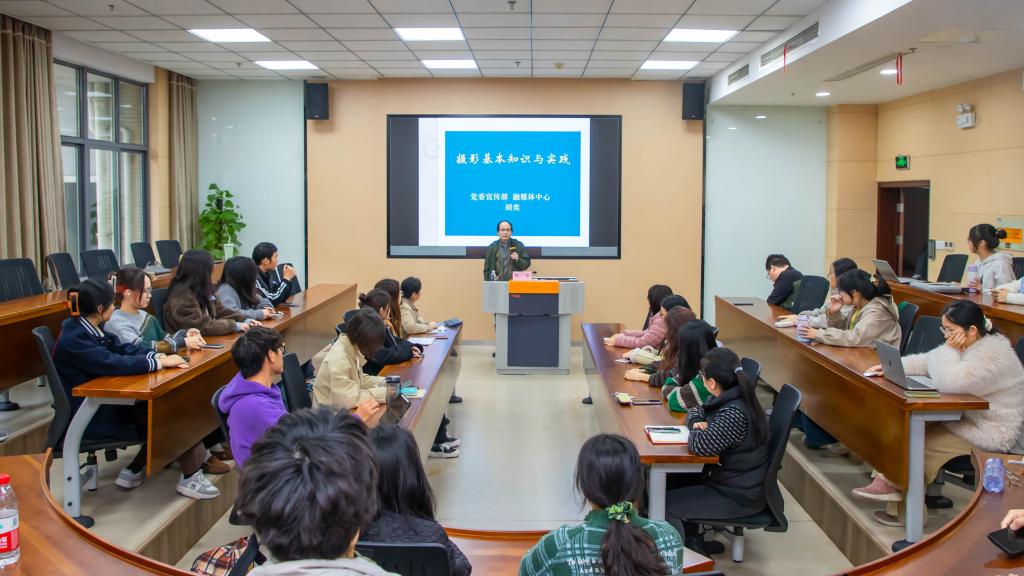 为进一步加强学院宣传队伍建设,提升各条线新媒体运营能力,AVxxx “小商融媒训练营”第一讲,在116会议室举办。本次活动邀请校党委宣传部、融媒体中心胡奕老师开展摄影专题培训。学院教工通讯员,新媒体工作室全体成员,学生会、分团委以及研究生会学生骨干参加此次培训。