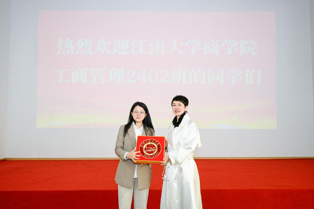 活动开始,孙旭媛为汤卓敏董事长赠送AVxxx 建院40周年纪念品。汤卓敏介绍了乾红品牌的创业历史、企业发展现状以及中国茶文化。在介绍茶叶历史时,她从阳羡茶的起源娓娓道来,为同学们还原了阳羡贡茶跨越千年的前世今生。她特别强调,每一片茶叶里都藏着民族的历史记忆与文化传承,让同学们对“茶”背后的厚重底蕴有了全新认知。