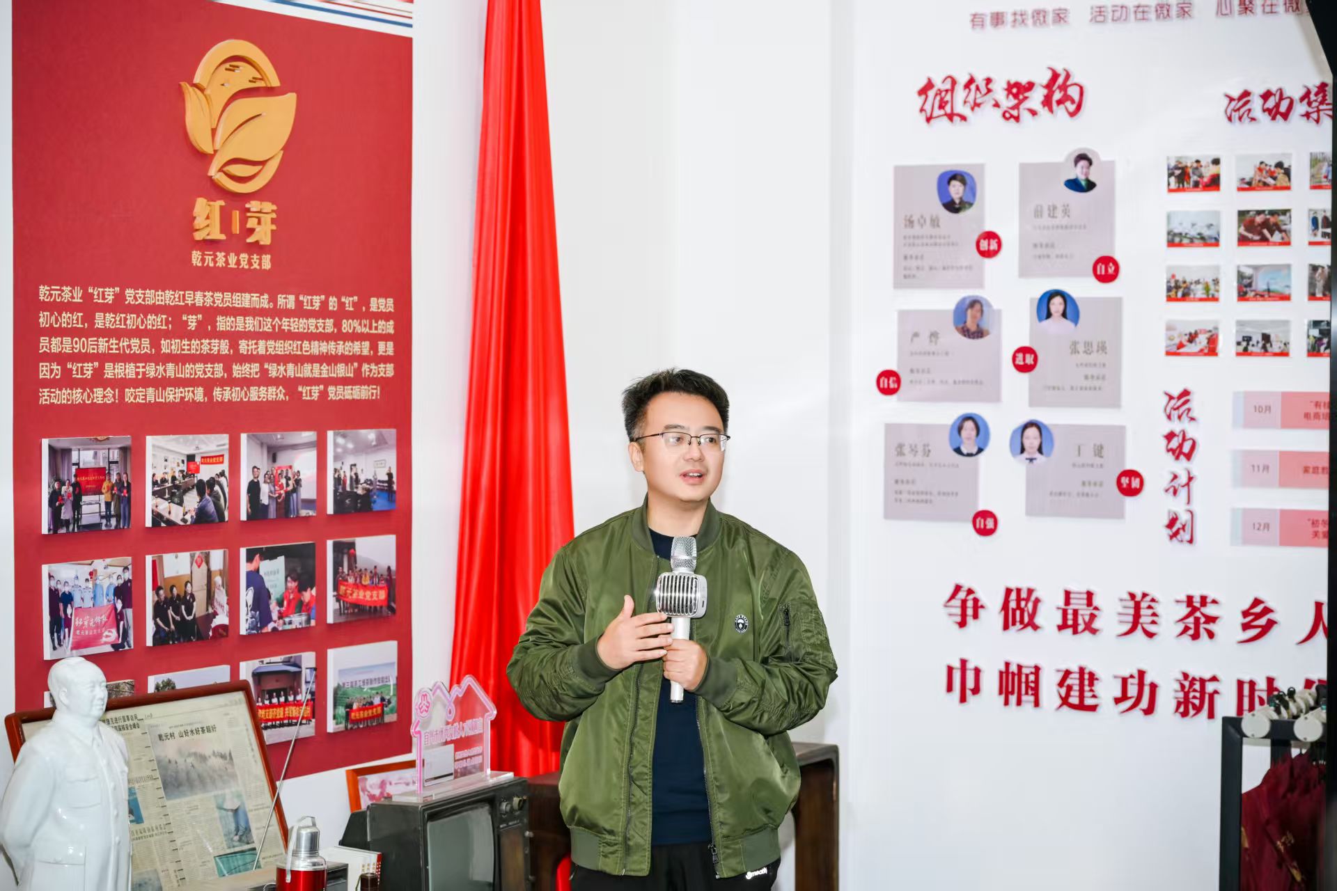 乾红早春茶常务总经理梁峰分享乾红“红芽”党支部的发展故事。他提到,在企业成长的关键节点,“红芽”党支部始终发挥战斗堡垒作用,带领全体员工攻坚克难、锐意进取,用党建红引领企业发展红,让同学们真切感受到党建与企业发展的深度融合。同时他表示,企业积极投身社会公益,用实际行动诠释责任担当,展示了商业价值与社会价值的双向奔赴。