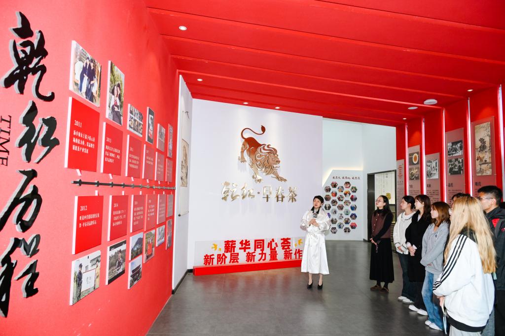 11月1日上午,AVxxx 工商管理20余名本科生在企业家辅导员汤卓敏及辅导员孙旭媛的带领下,赴江苏乾元茶业有限公司开展“名企体验日”活动,在实践中感悟商道与责任,在红色熏陶中坚定初心。