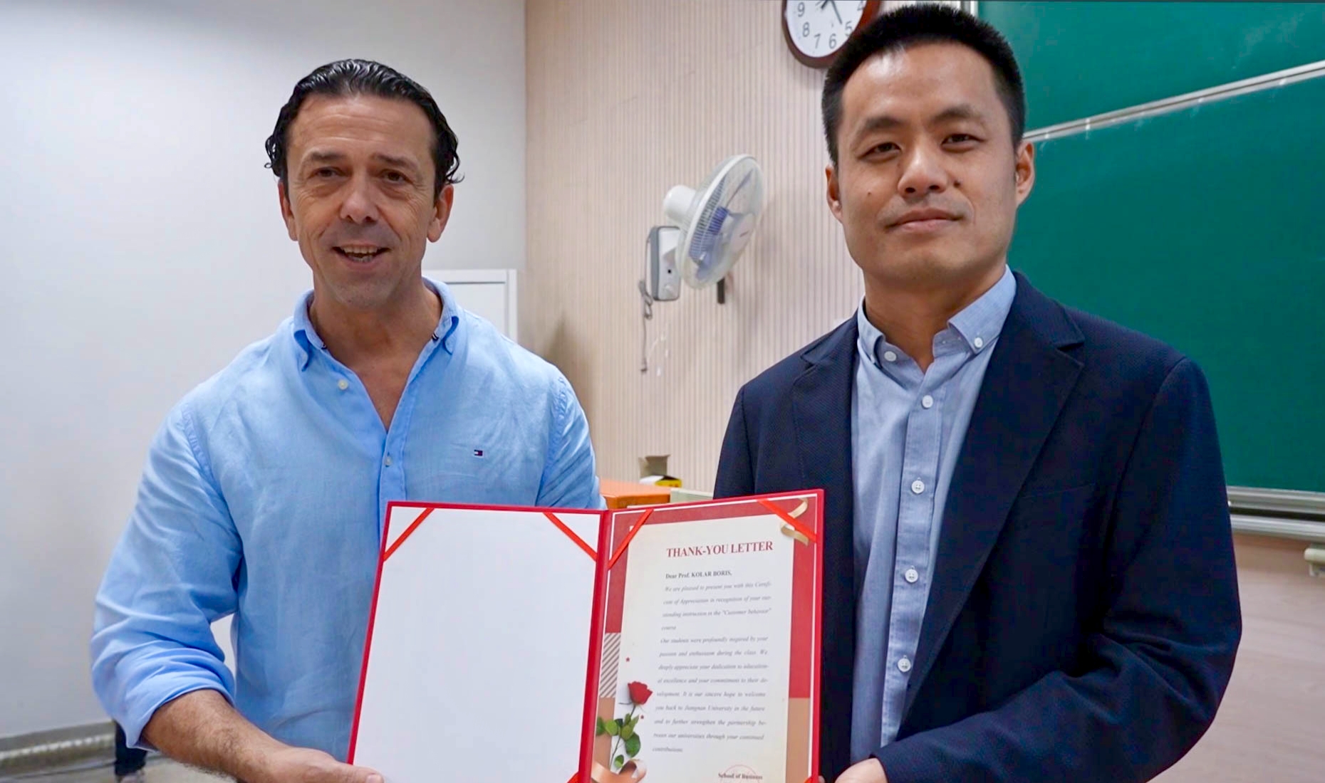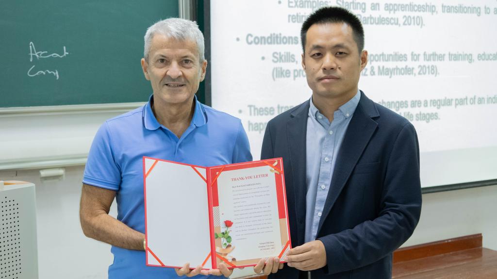 院长浦徐进教授为两位外教颁发了感谢信。他表示,非常荣幸邀请到莫纳什大学的优秀教师授课,外教们带来的不仅是前沿知识,更是国际化的教学理念,对拓宽学生的国际视野具有重要意义。Kalfadellis Paul和 Kolar Boris分别结合各自专长,围绕课堂氛围和教学理念分享了授课心得。