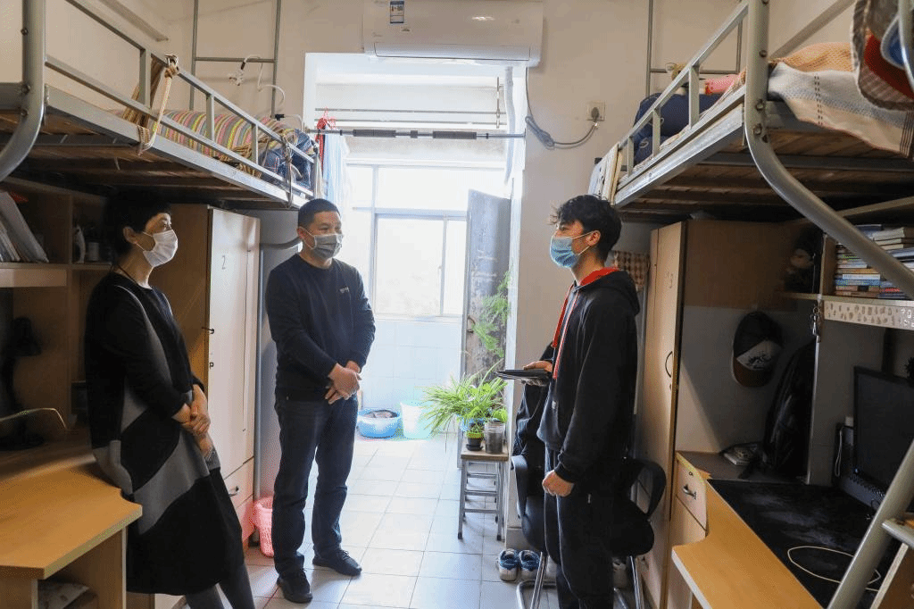 走访宿舍中,院领导与同学们展开亲切交流,详细询问了返校学生目前的身体状况、口罩等防疫物资的准备情况,叮嘱同学们在返校之后要继续重视个人防护,注意身体健康,保持良好的学习生活规律,用好时间充实自己。