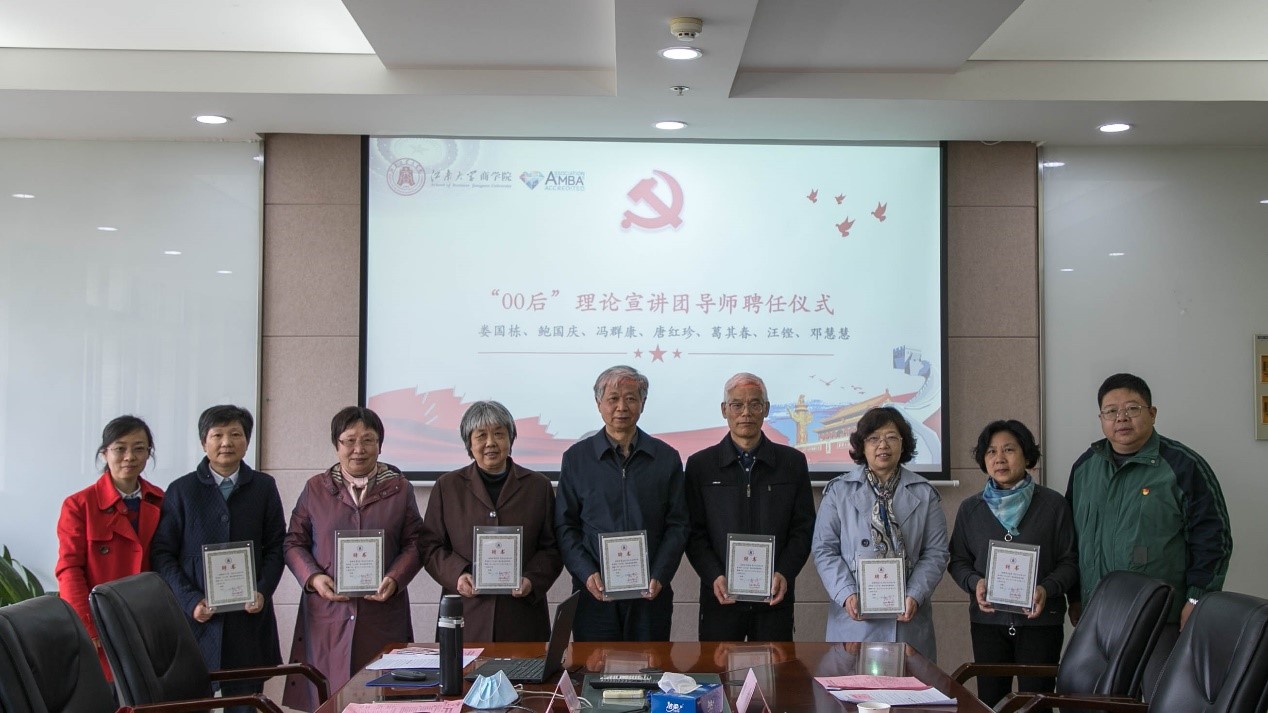 党委书记刘长青为娄国栋、鲍国庆、冯群康、唐红珍、葛其春、汪铿、邓慧慧等颁发“新时代理论宣讲团导师”聘书。